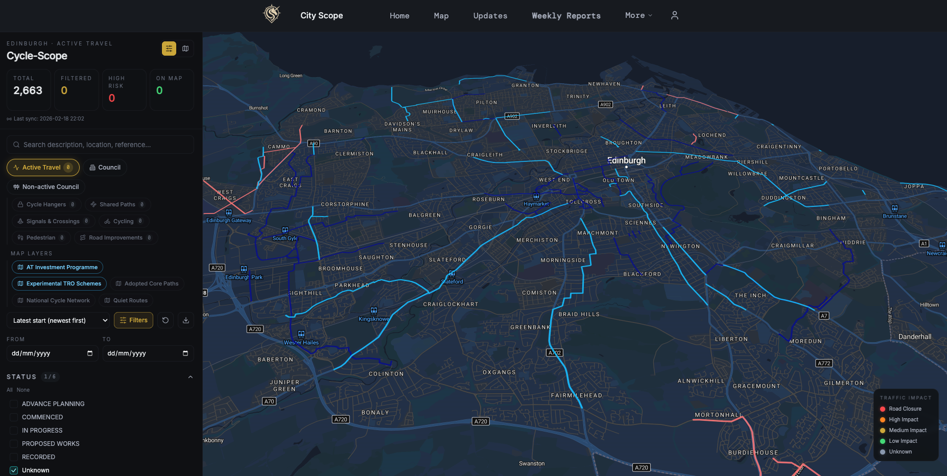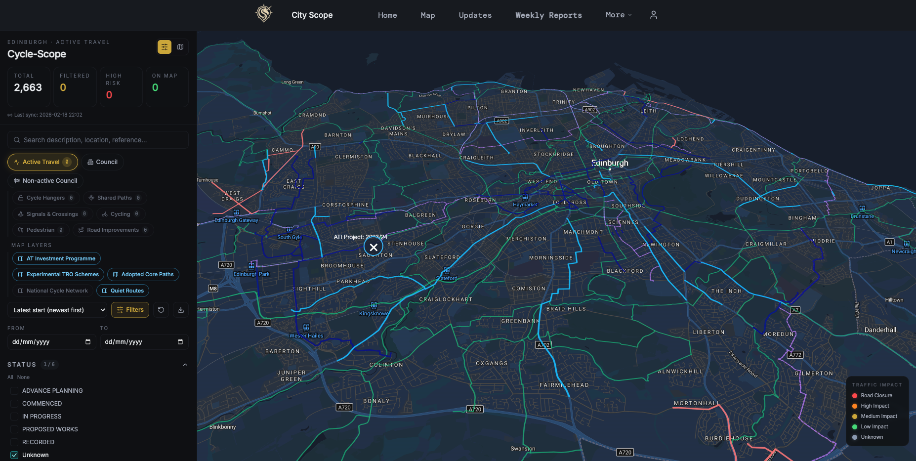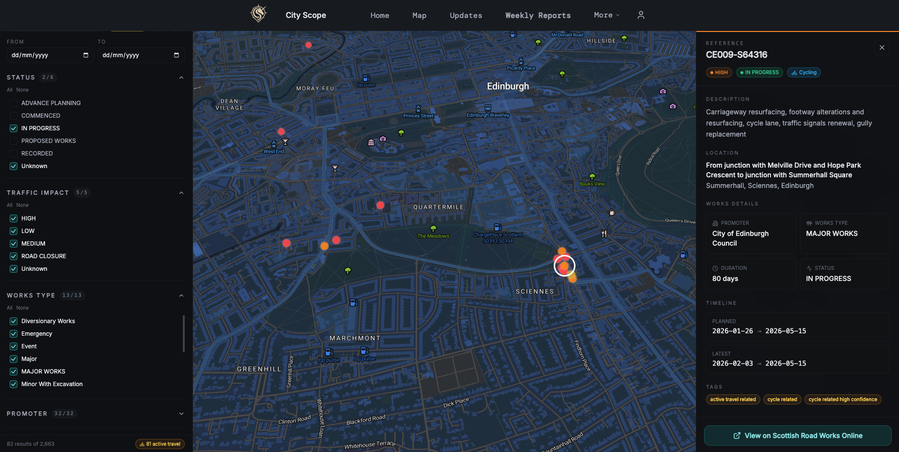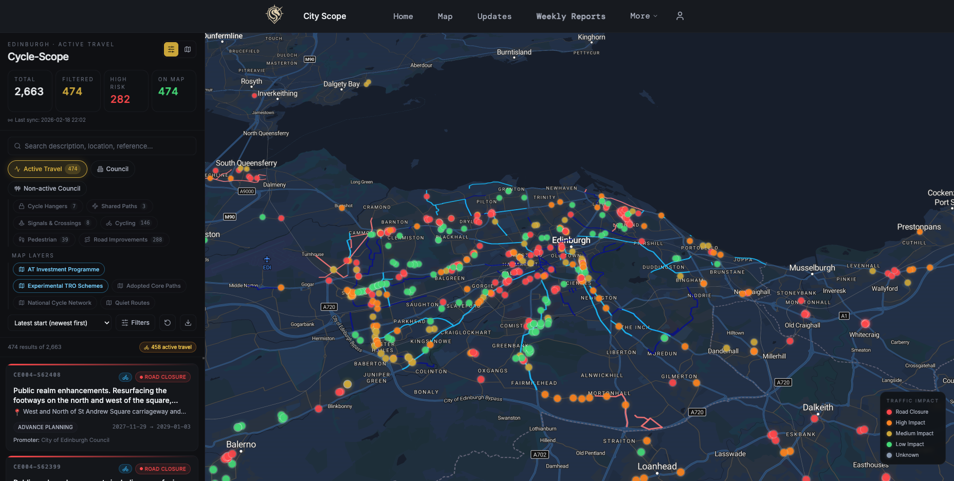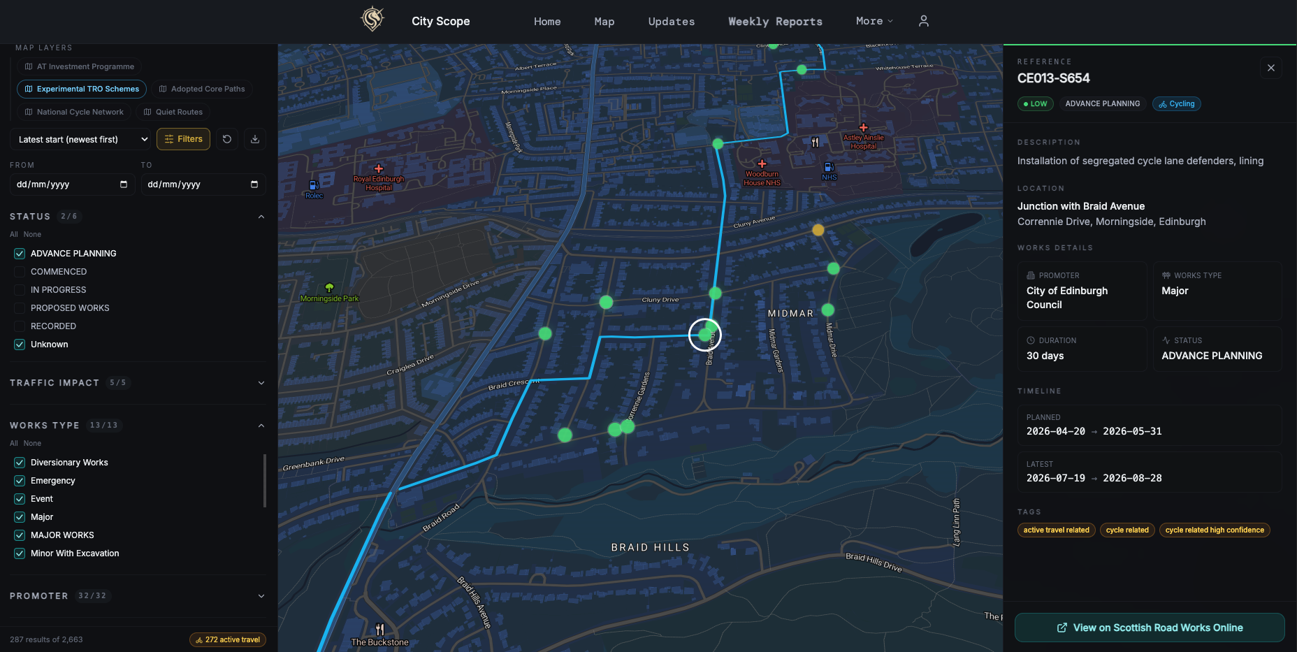 City Scope, a user-friendly and modern planning and development portal built by friend of edi.bike Harry Williams, has this week launched a dedicated active travel portal on its website called Cycle Scope - hot on the heels of their recently released tracker for Active Travel Investment delays.